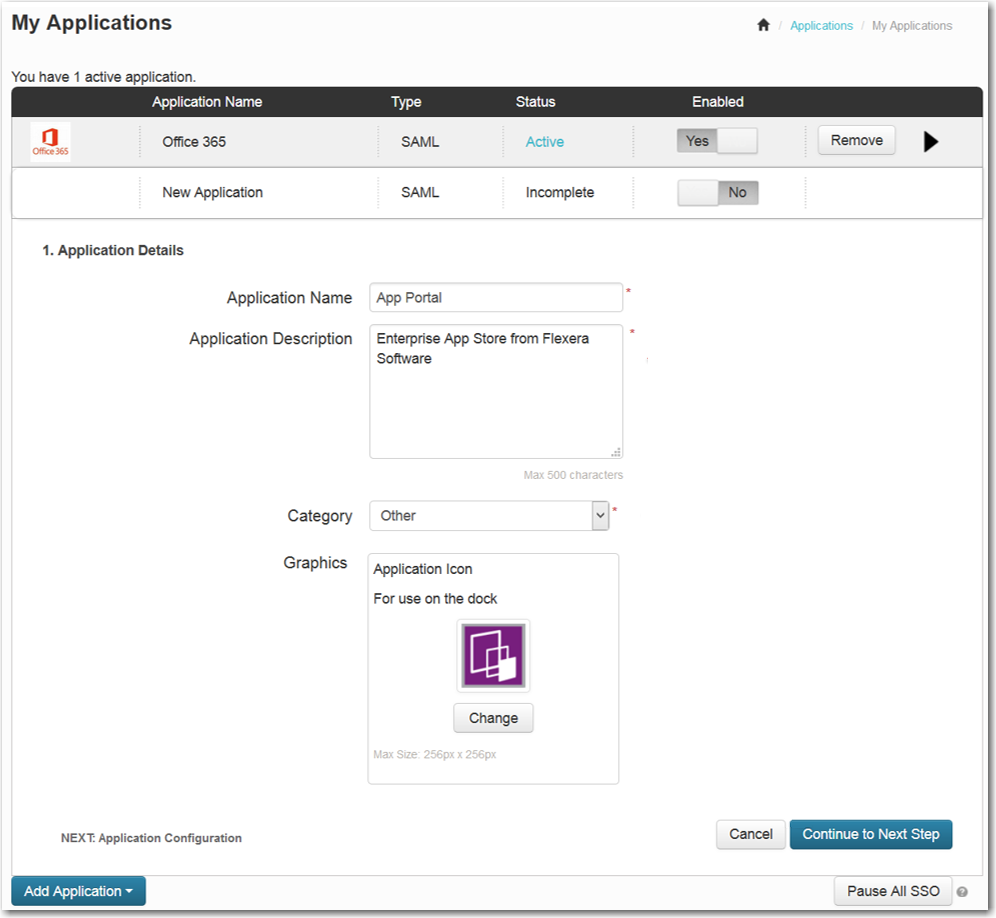 3. Enter the Application Name as you want it to appear to your SSO users.