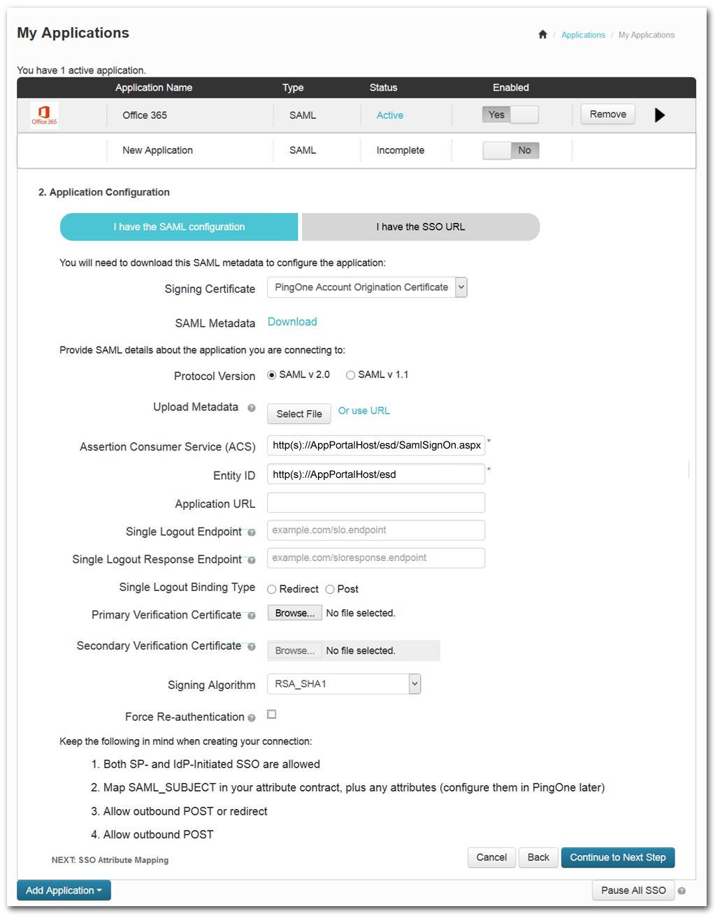 Configuring SAML 2.0 Authentication Using Ping Identity