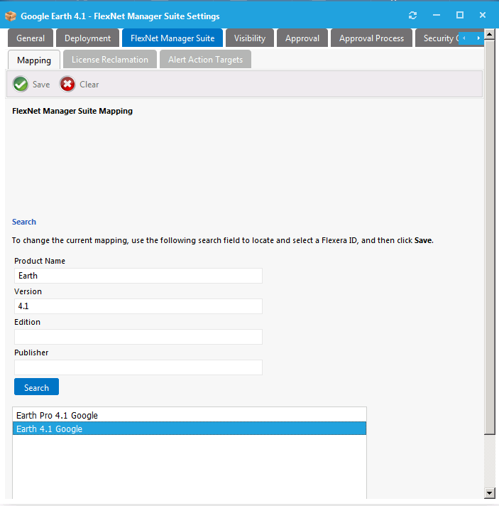 noteFor more information, see Mapping Tab under FlexNet Manager Suite Tab.