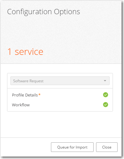 11. Click Queue for Import and observe that the status of the selected catalog item will be updated to Queued. Catalog items are imported from App Portal into BMC MyIT. Queue for import means that the catalog items are ready to be imported into BMC.